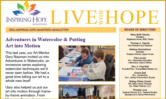 Inspiring Hope Ministries is a faith-based, educational and charitable 501(c)(3) organization. We have been developing our vision for IHM around 2010. We became an official non-profit in 2015. Starting in 2017 we developed an Annual Newsletter.